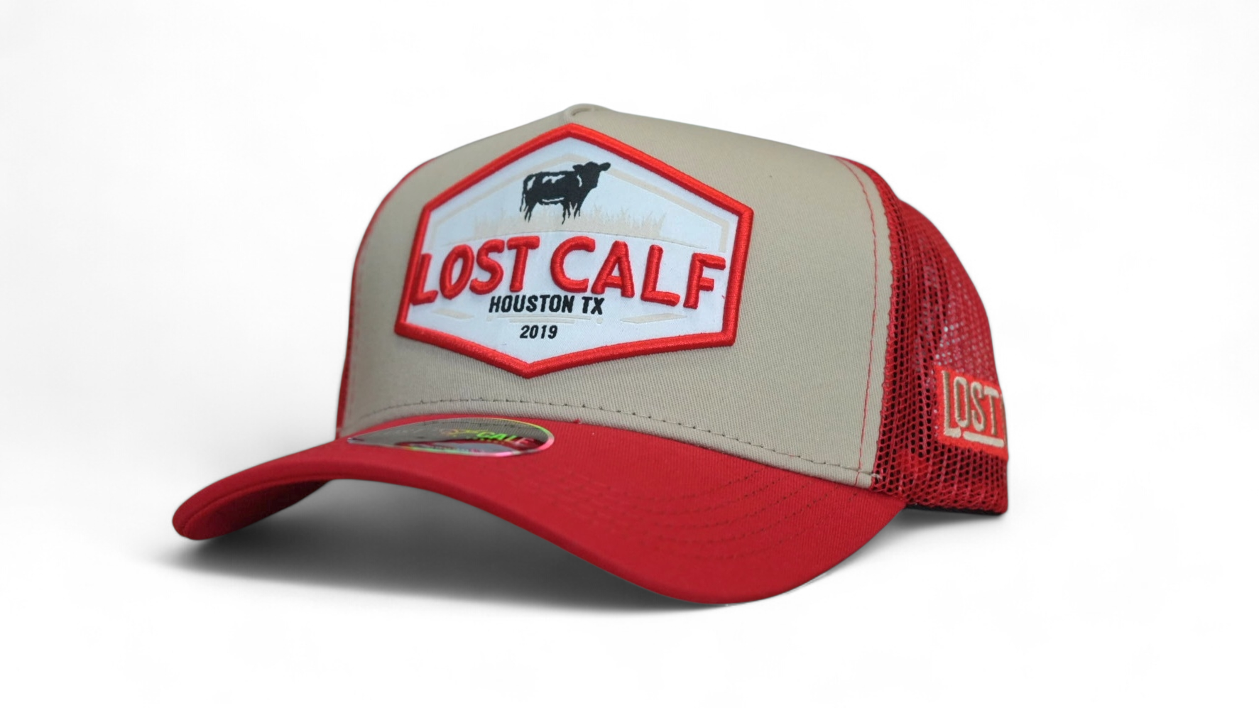 Baseball cap with Farm patch embroidered on front, Lost Calf stitched on left side.  Snap back - one size fits all.