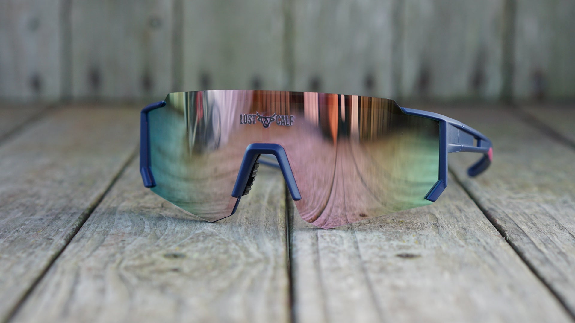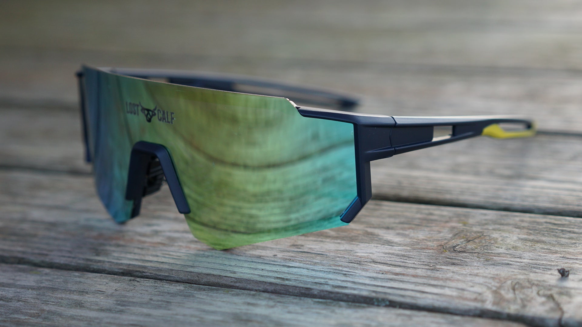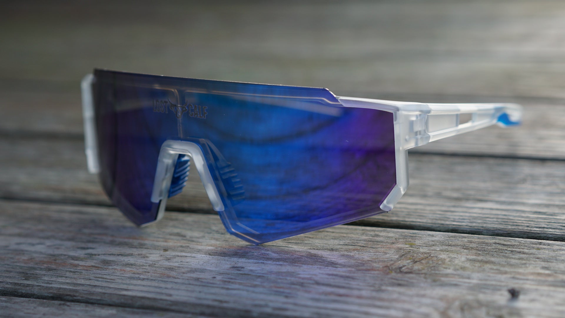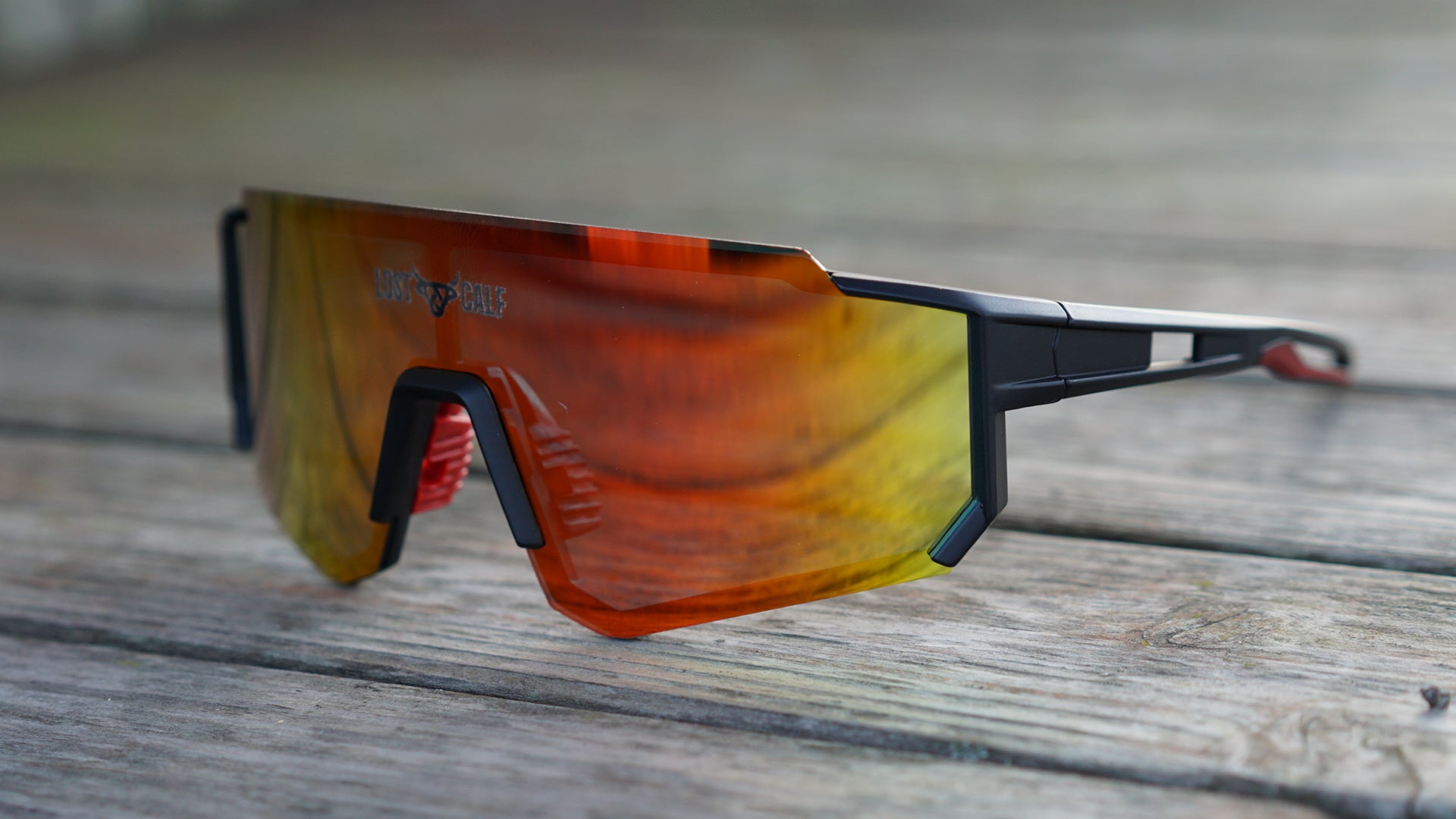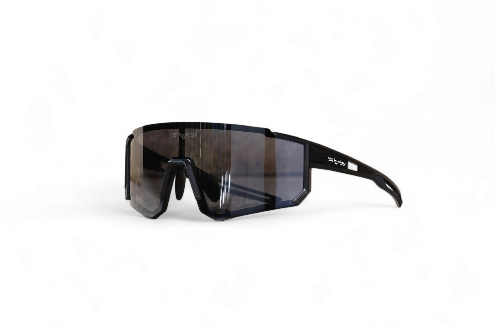 Polarized unisex sunglasses with our Lost Calf laser logo on center lens.