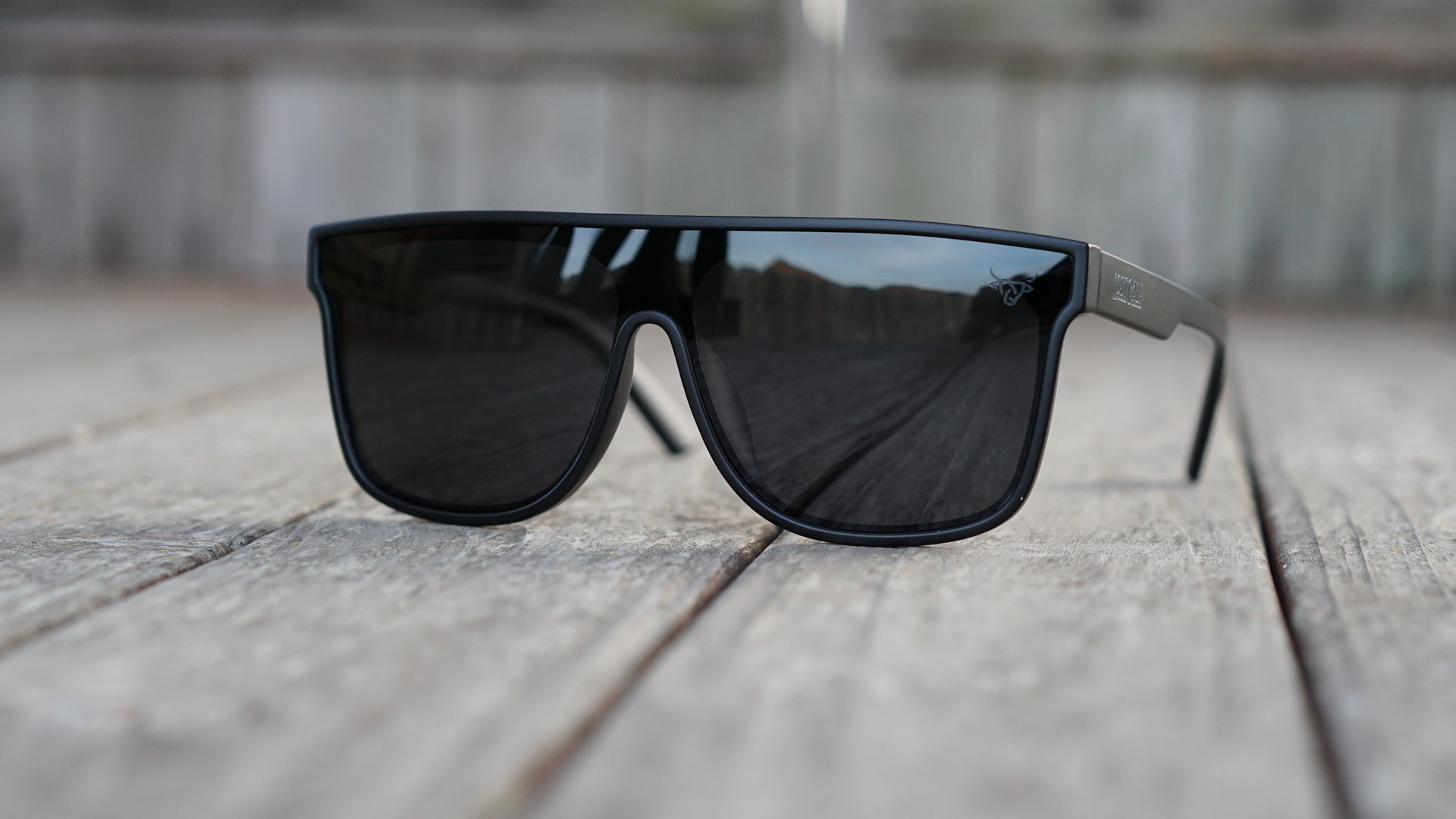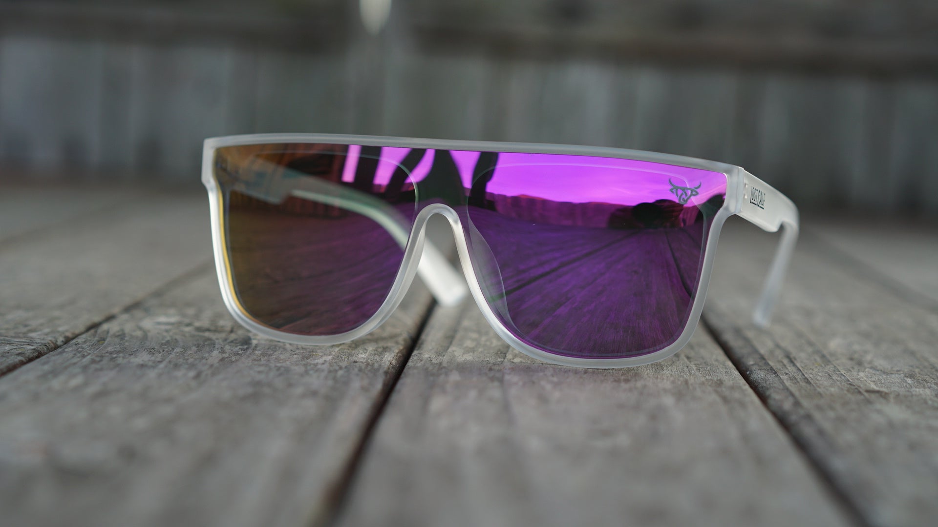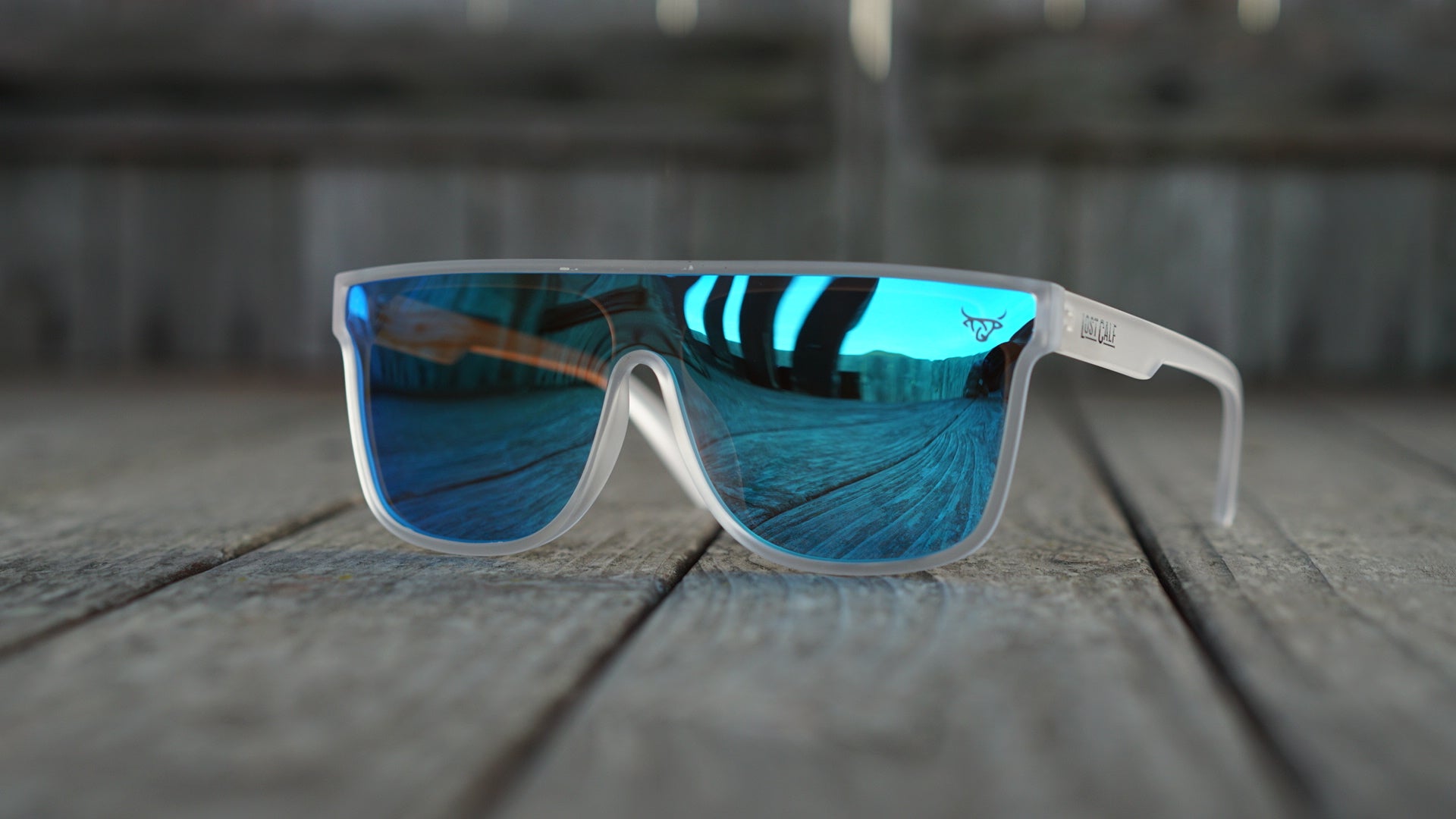 Polarized unisex sunglasses with our Lost Calf laser logo on the side lens.