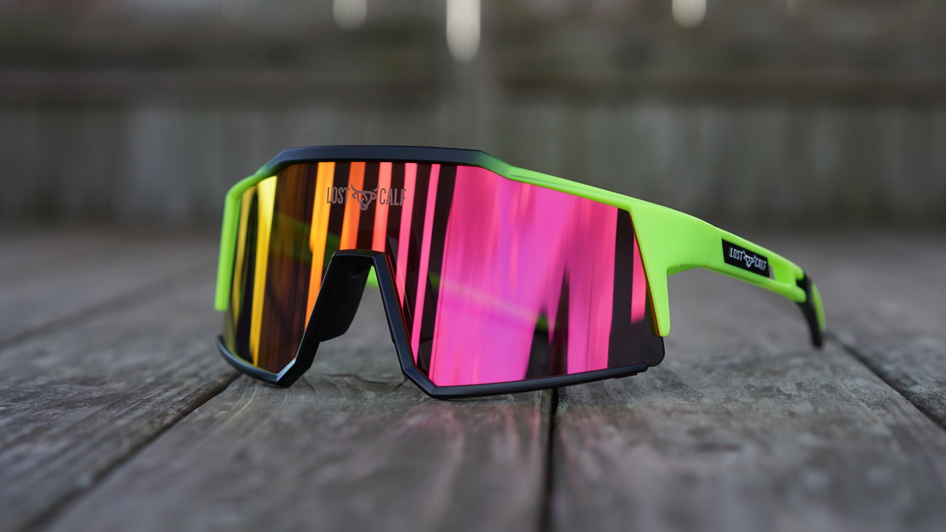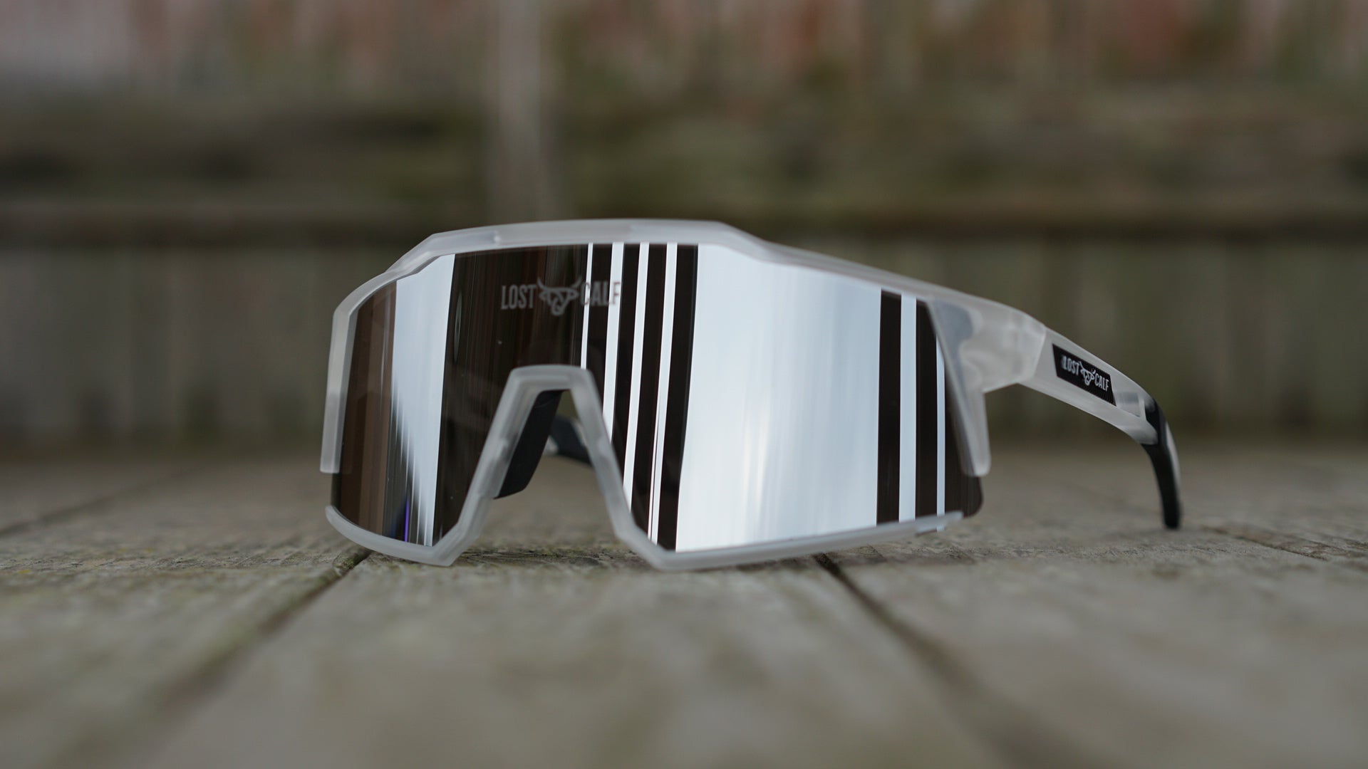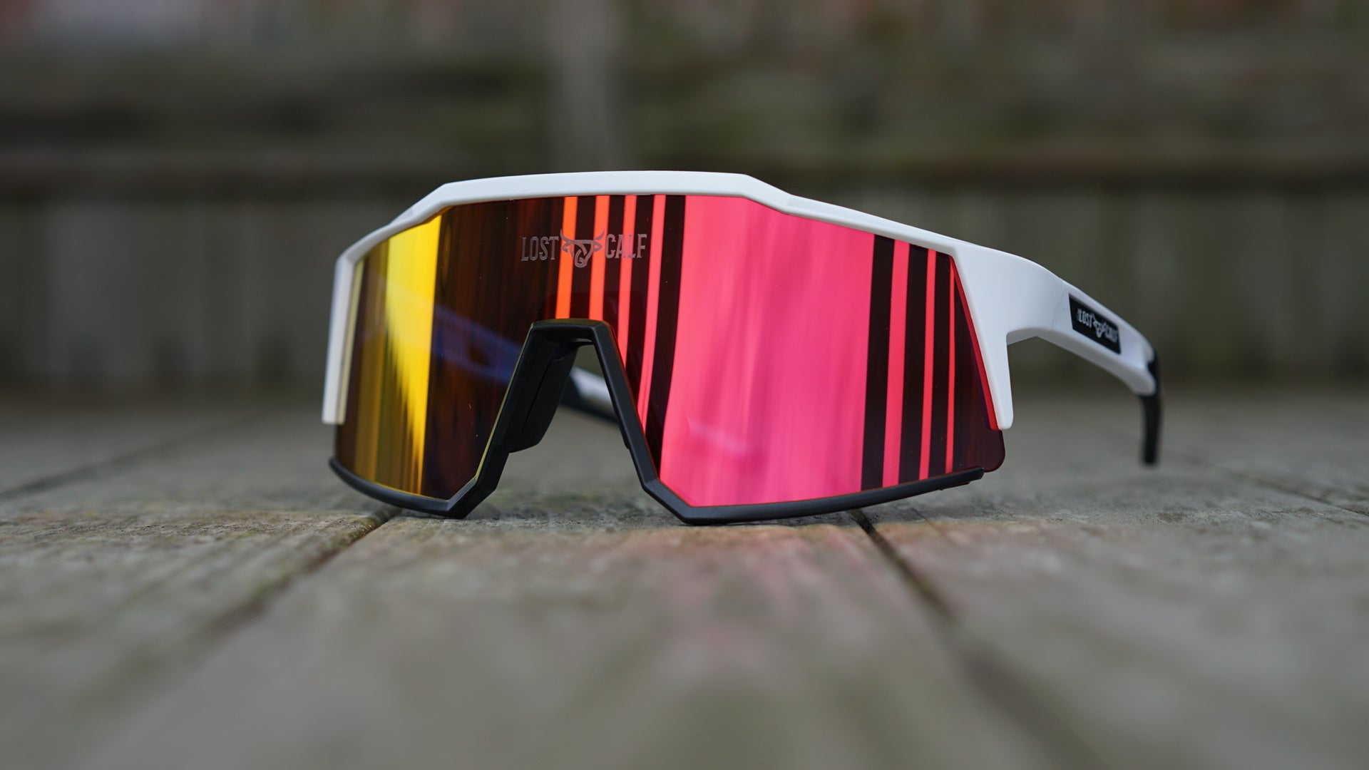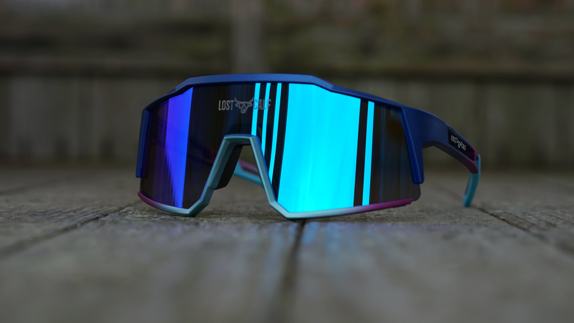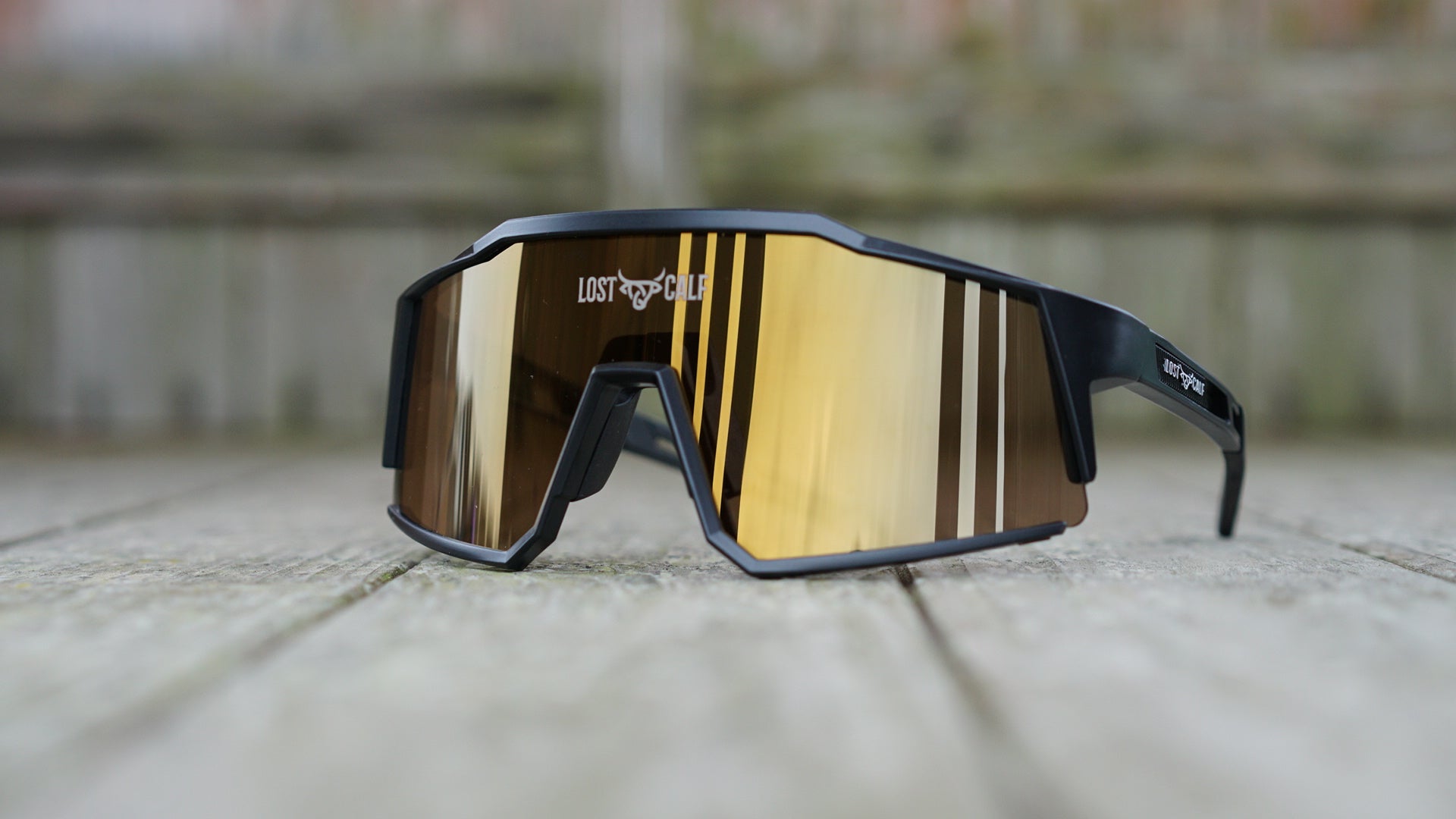 Polarized unisex sunglasses with our Lost Calf laser logo on center lens.