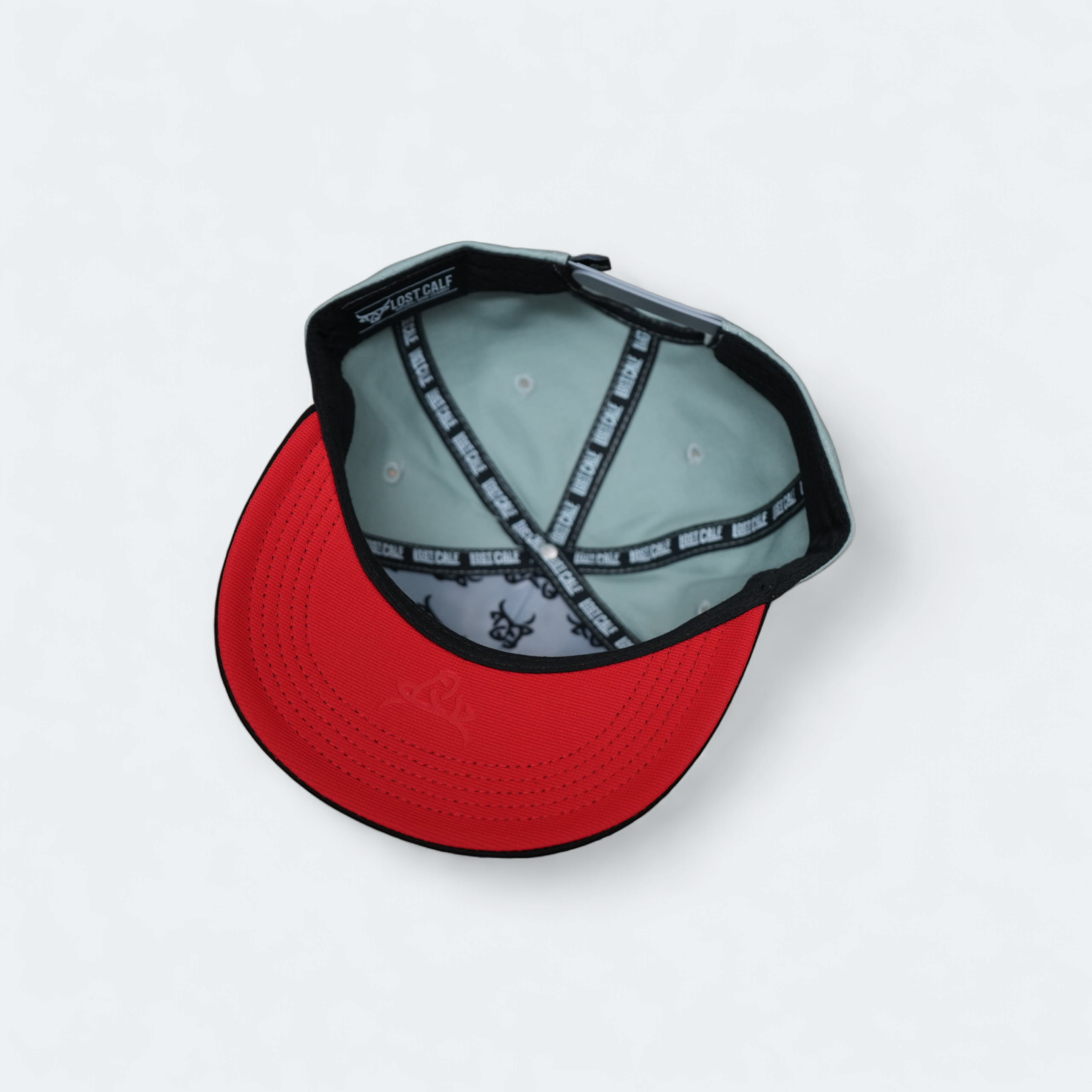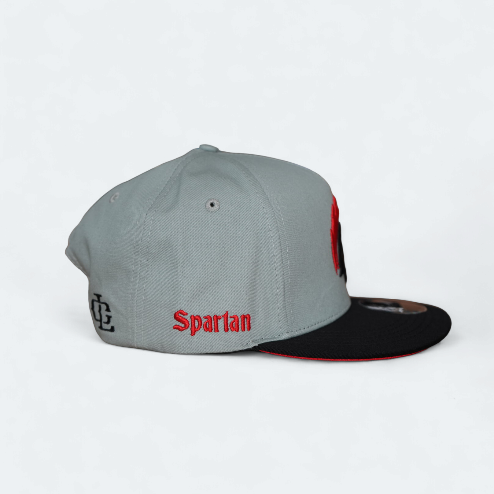 Baseball cap with Spartan logo embroidered on front , Lost Calf logo on left side. Snap back - one size fits all.